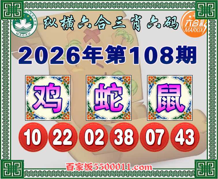 108期: 纵横六合 🥬三肖六码🥬【鸡蛇鼠】开:狗45