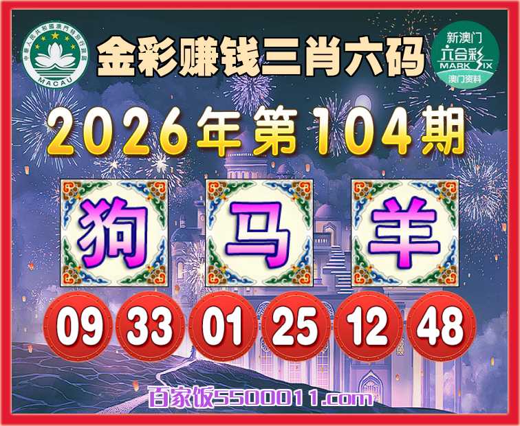 104期:〖金彩赚钱〗 🏆三肖六码🏆【狗羊】开:马01