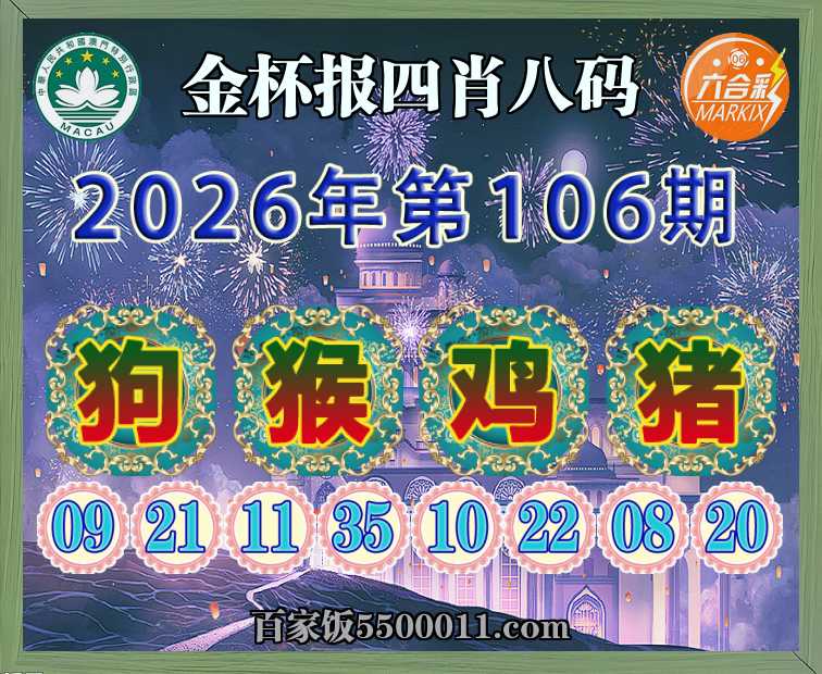 106期:【金杯报】 🎀四肖八码🎀【狗猴猪】开:鸡22