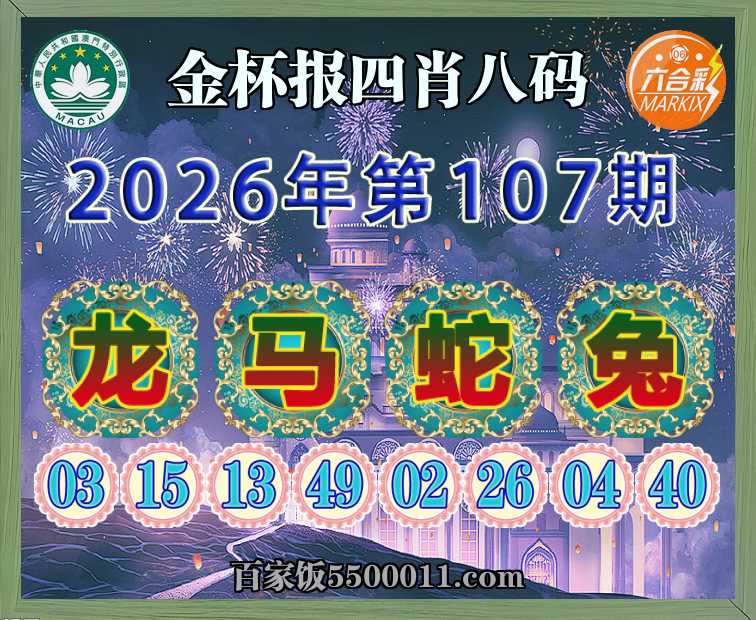107期:【金杯报】 🎀四肖八码🎀【龙蛇兔】开:马49