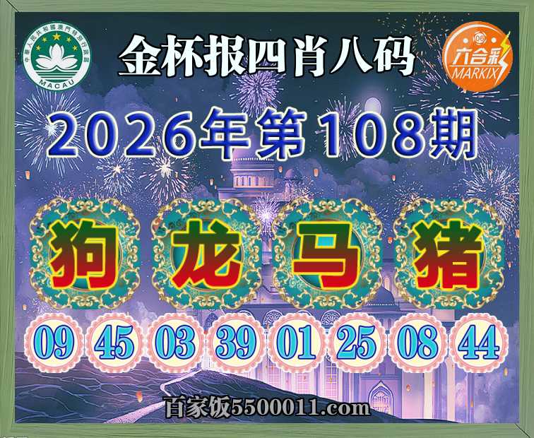 108期:【金杯报】 🎀四肖八码🎀【龙马猪】开:狗45