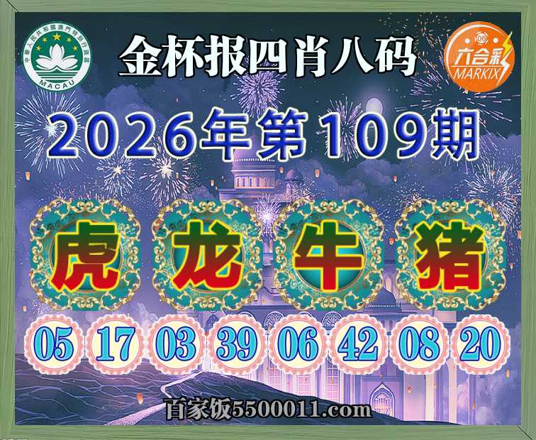 109期:【金杯报】 🎀四肖八码🎀【虎龙牛猪】开:00准