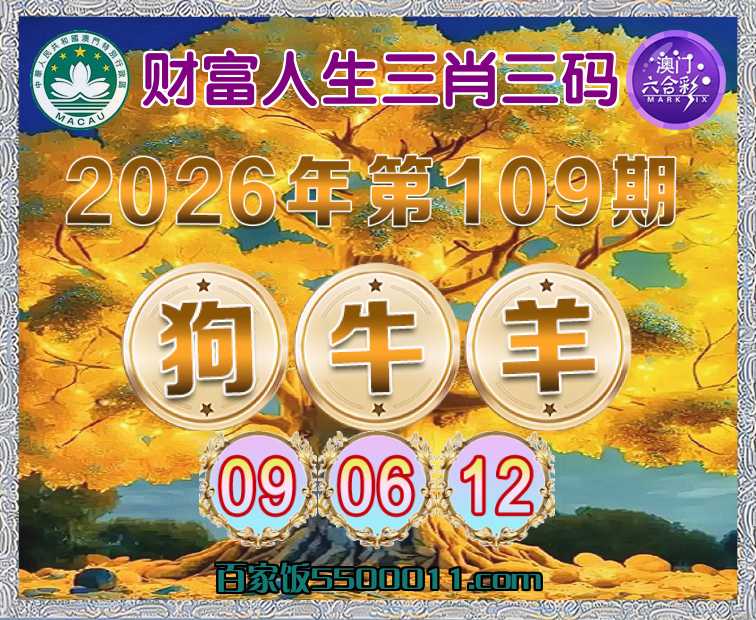 109期:【财富人生】 🎆三肖三码🎆【狗牛羊】【09.06.12】开:00准
