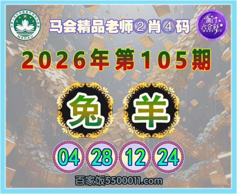105期:【马会精品老师】 🍎②肖④码🍎【羊】【04.28.12.24】开:兔28