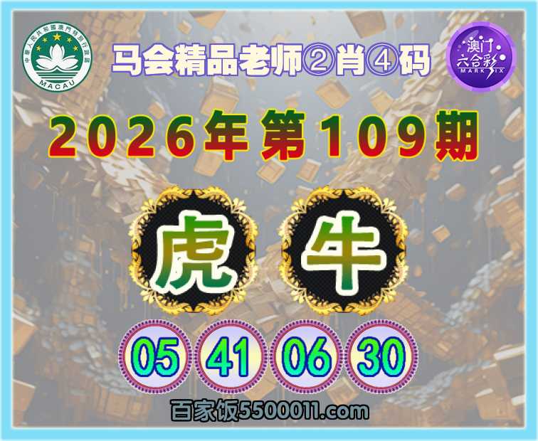 109期:【马会精品老师】 🍎②肖④码🍎【虎牛】【05.41.06.30】开:00准